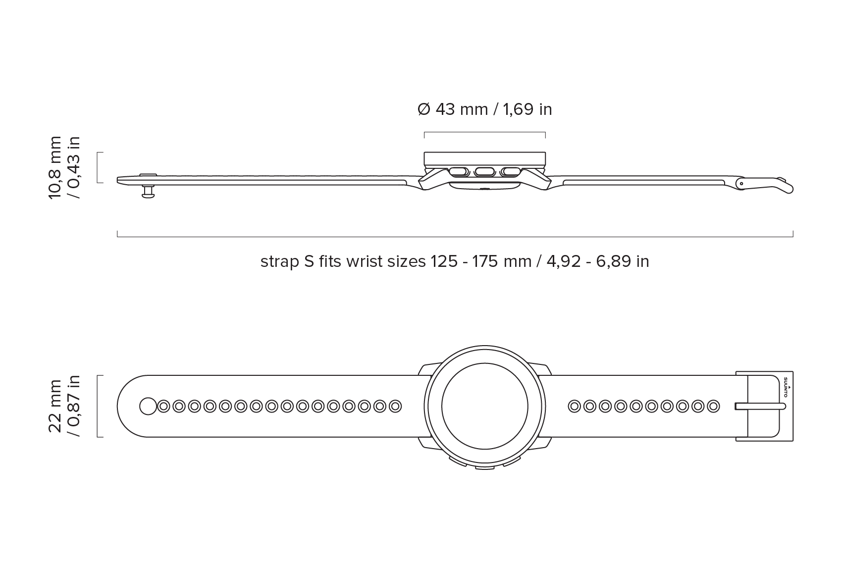 Wrist sizes:125-175 mm or 125-200 mm depending on the model (accessory straps -215 mm)